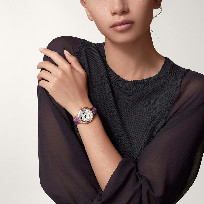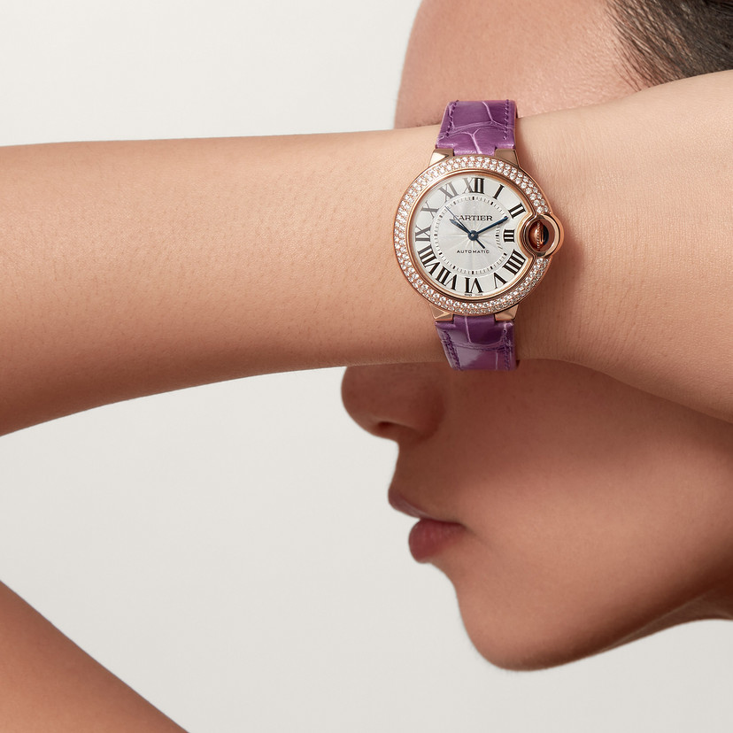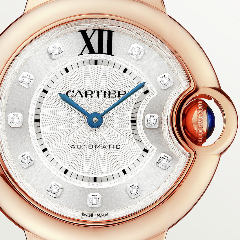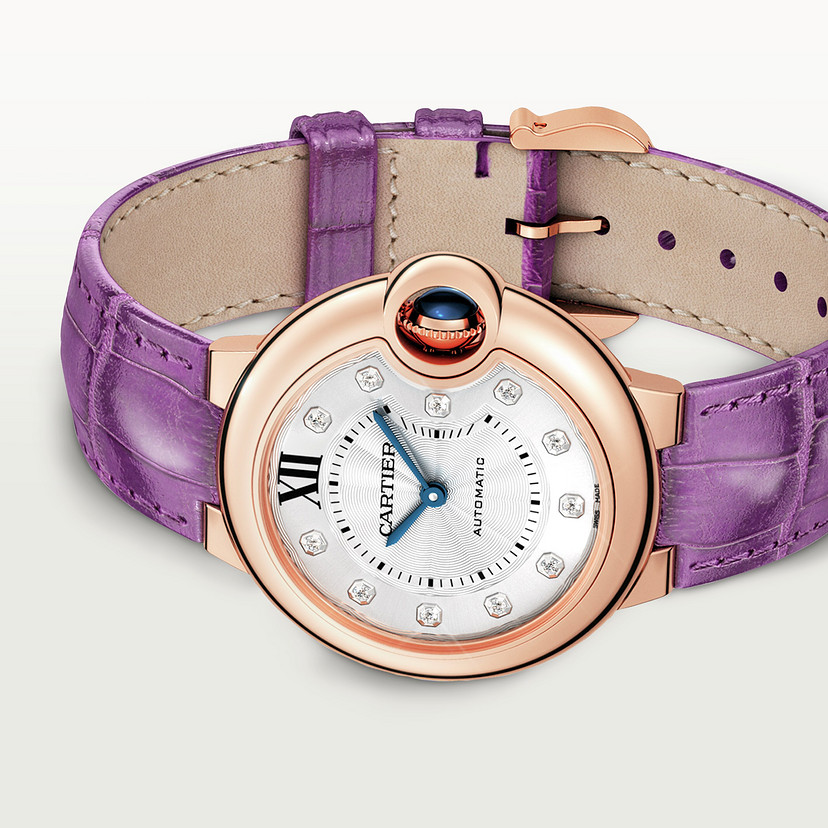 Ballon Bleu de Cartier watch 33mm rose gold diamonds leather CRWE902063
