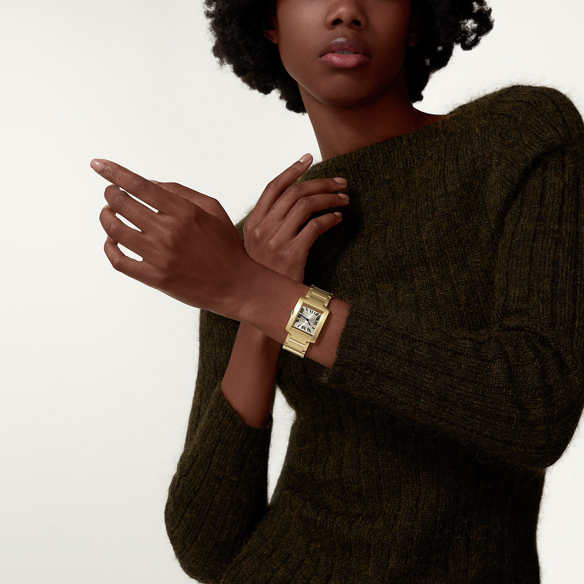 Tank Franaise watch Medium model quartz movement yellow gold CRWGTA0113
