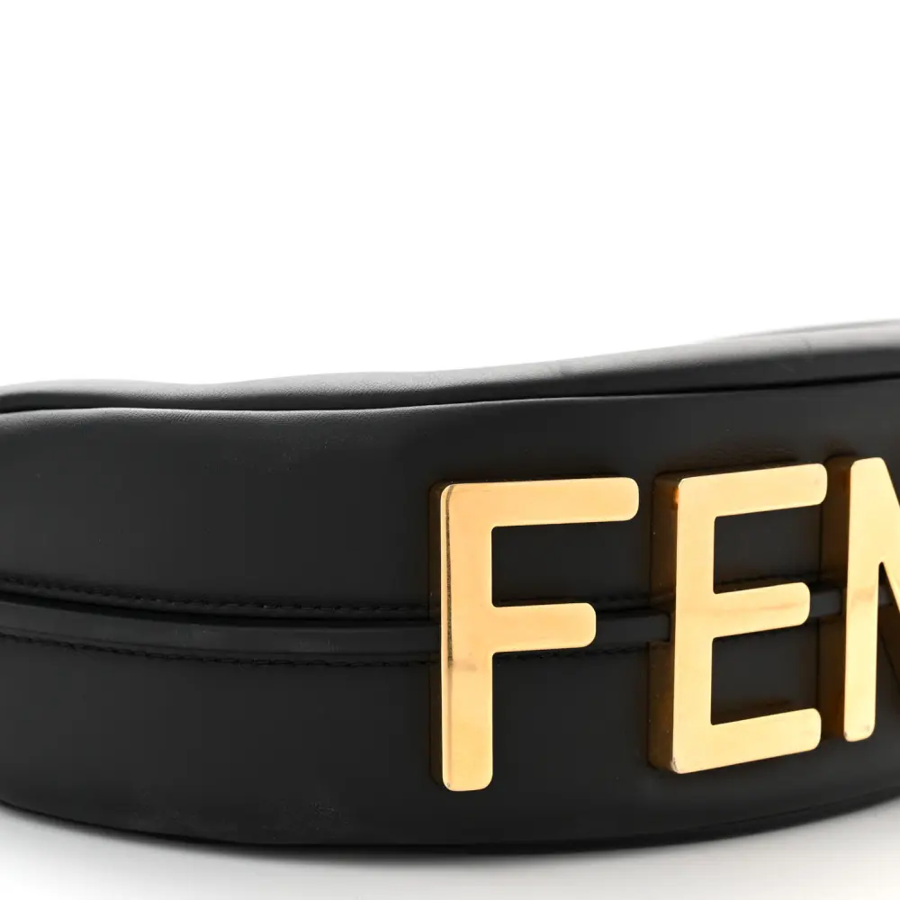 Fendi Small Fendigraphy Hobo Bag Black Matte Grace Vitello Leather Gold Hardware