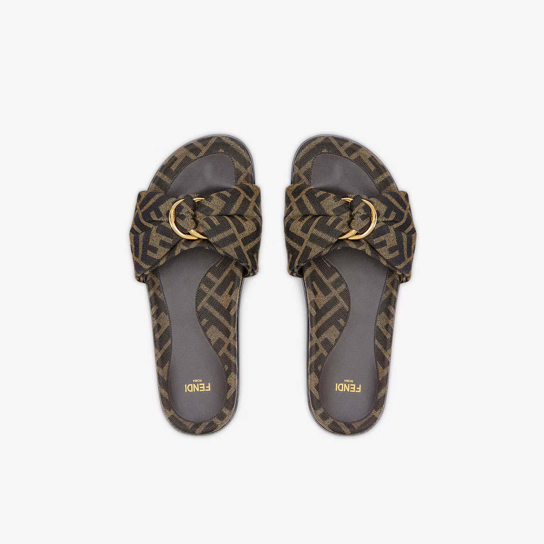 FENDI Brown FF jacquard sandals slippers