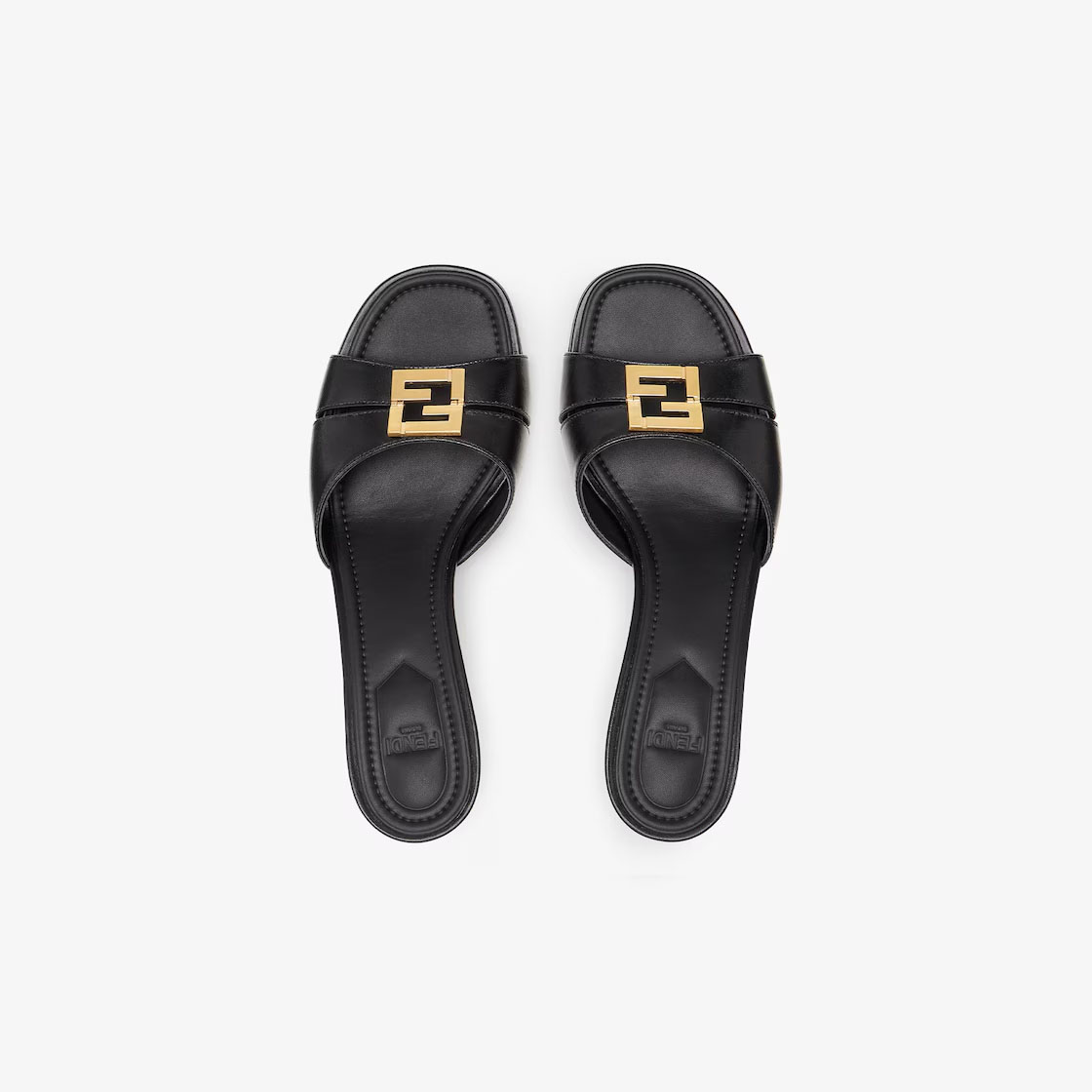 FENDI Black leather kitten heel sandals