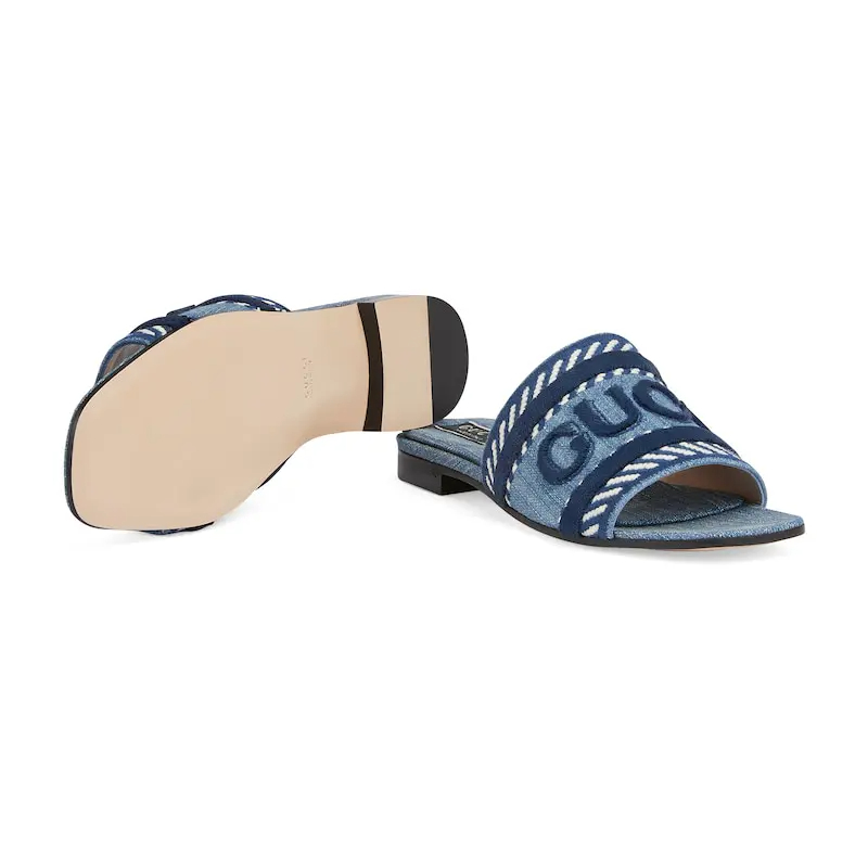 Gucci square head blue flat bottom slippers