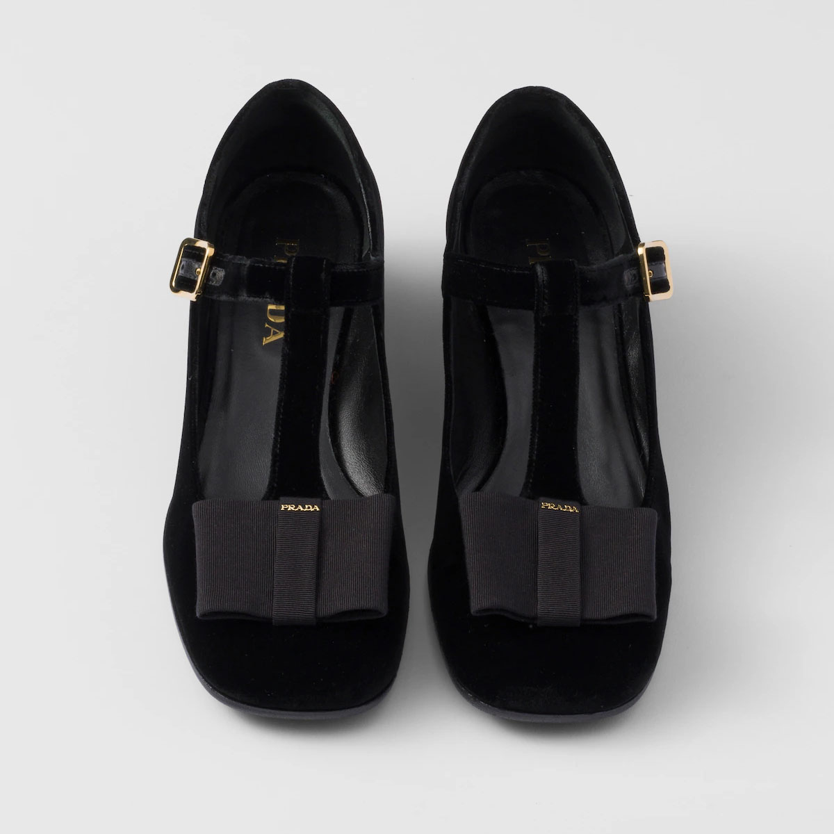 PRADA Velvet Black High Heels Shoes Mary Jane Shoes
