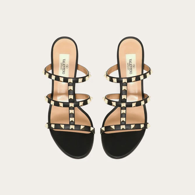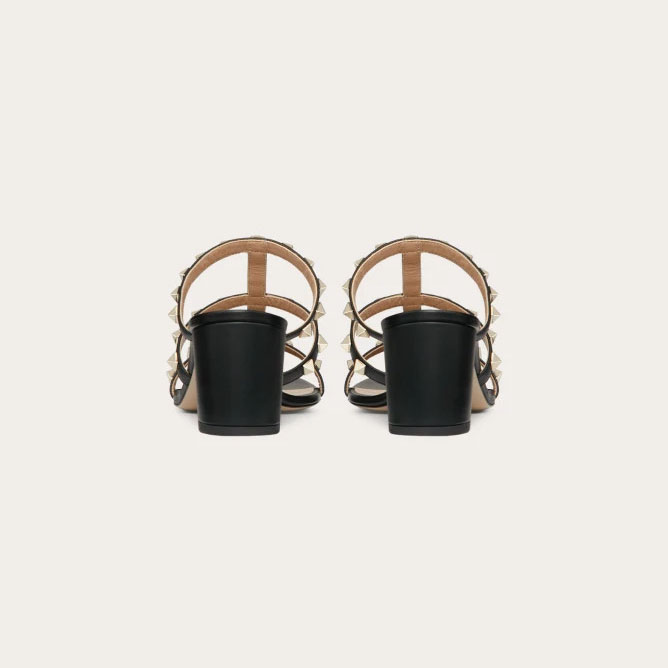 VALENTINO Black calfskin rivet heel sandals (heel height 6cm)