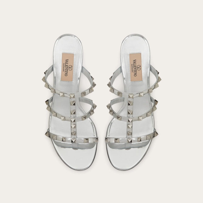 VALENTINO Silver mirror effect rivet sandals (heel height 6cm)