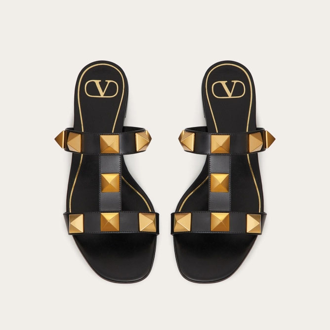 VALENTINO Black Cowhide slip-on sandals