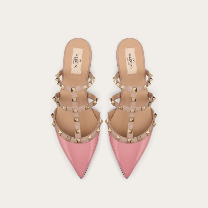VALENTINO Pink patent leather studded Muller shoes